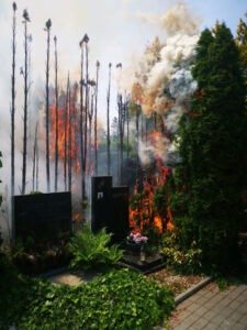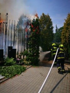 Ve středu 16. června 2021 od 12:44 hodin zasahovala jednotka pražských profesionálních hasičů ze strašnické stanice u požárů tújí na Vinohradském hřbitově. Požár hasiči likvidovali jedním proudem vody a dostali plameny pod kontrolu za 15 min po příjezdu na místo.