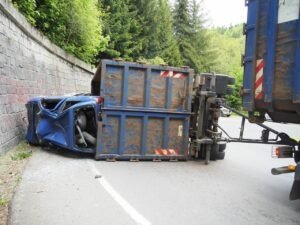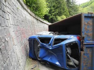 V pátek 28. května 2021 před jedenáctou hodinou dopoledne vyjeli policisté do Kopřivné k havárii přívěsu přepravujícího vraky vozidel. Přívěs se převrátil v momentě, když 48letý řidič projížděl levotočivou zatáčkou v lesním úseku mezi Hanušovicemi a Kopřivnou. Vraky vozidel se během přepravy posunuly a samotný přívěs se převrátil na pravý bok. Havárie se obešla bez zranění. V této souvislosti připomínáme všem řidičům, že je nezbytné věnovat pozornost řádnému zajištění přepravovaného nákladu.