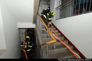 Hasiči požár vybavení jednoho pokoje rychle lokalizovali jedním proudem vody, zasahovali v dýchací technice. Ze zakouřených prostor domu evakuovali 18 osob, 16 osob zachránili pomocí vyváděcích masek. Zachráněni byli také čtyři psi a jedna kočka. Jedna zraněná osoba byla předána do péče ZZS.