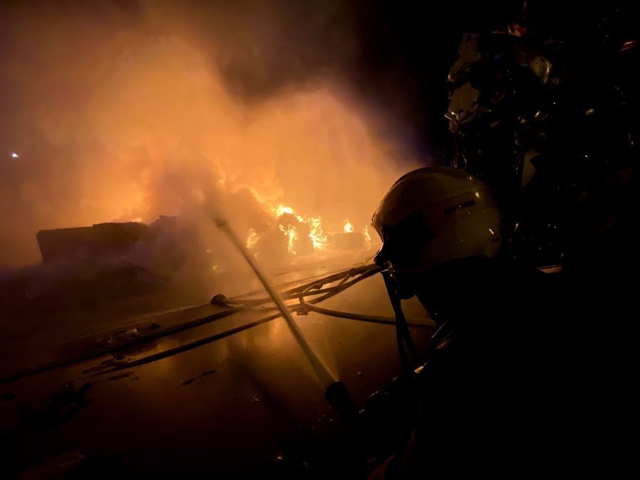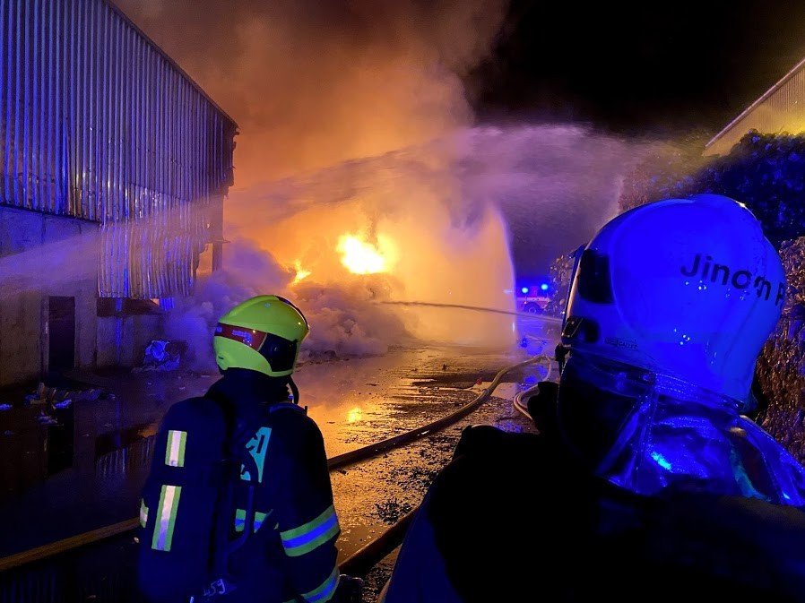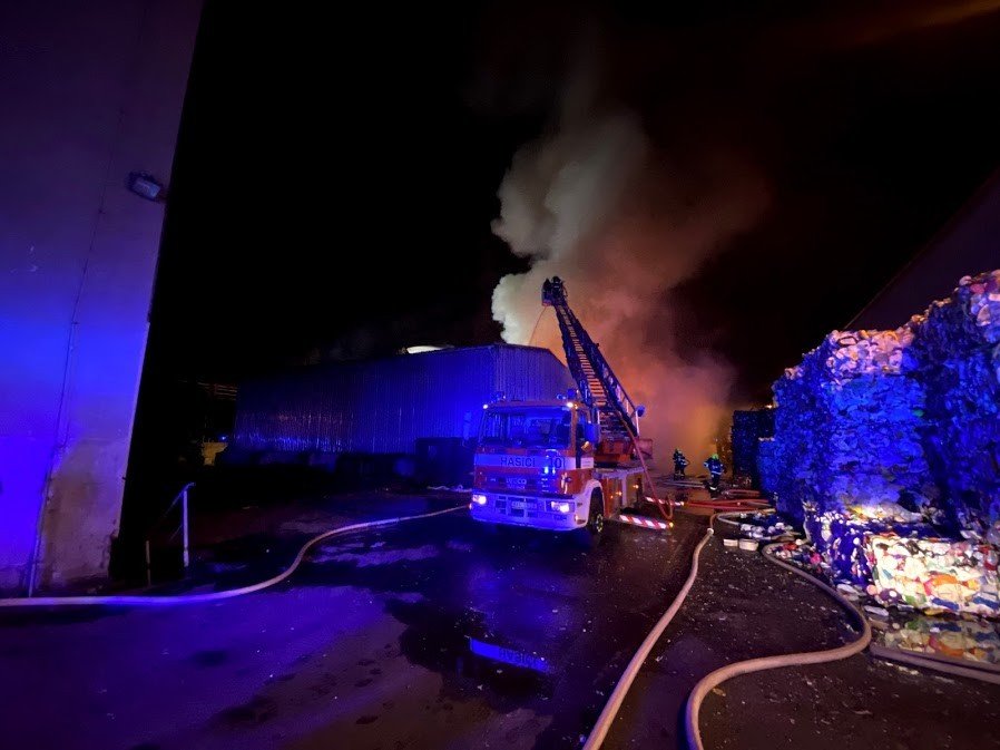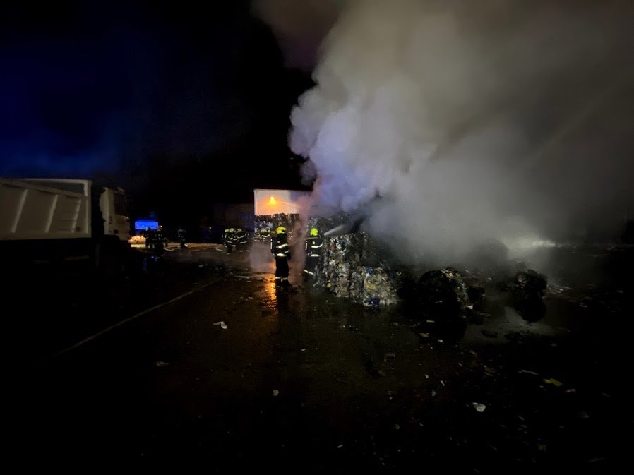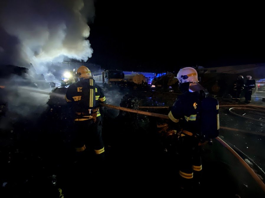Po příjezdu první jednotky na místo bylo zjištěno, že se na místě nachází celkem 150 tun plastu, požárem bylo zasaženo 50 tun a ohrožena cisterna s 20 tis. litry nafty a přilehlá hala. Zásah byl rozdělen do 5 požárních úseků a probíhal v dýchací technice, část proudů byla vedena pomocí výškové techniky. Cisternu s naftou se podařilo ochladit a uchránit.